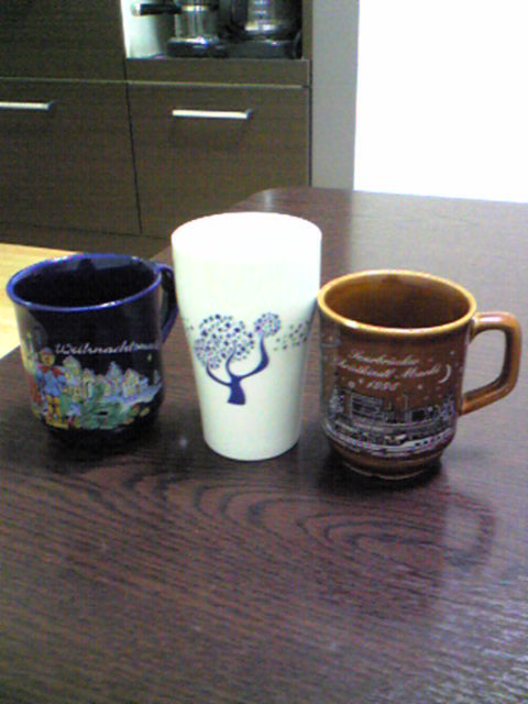 右側の茶色いのが、わたしがドイツで住んでいた町のもの。1996(その年)と町の名前がプリントされてあり、その町の象徴である川を中心とした町の風景が描かれています。左側のは・・・、どこのか忘れちゃいました(笑)。