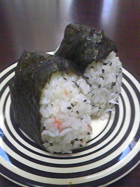 今朝はじゃこと梅干と黒ゴマを混ぜ込んだおにぎりにしました。