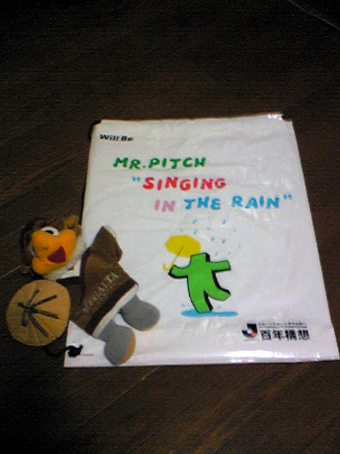 雨の日に配られるMR.PITCHの巨大ビニール袋。